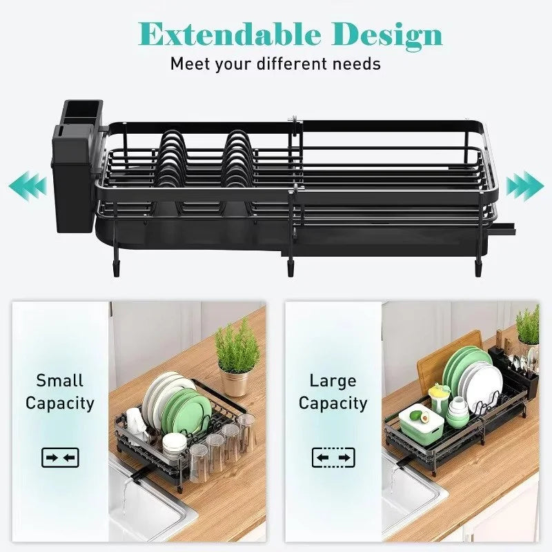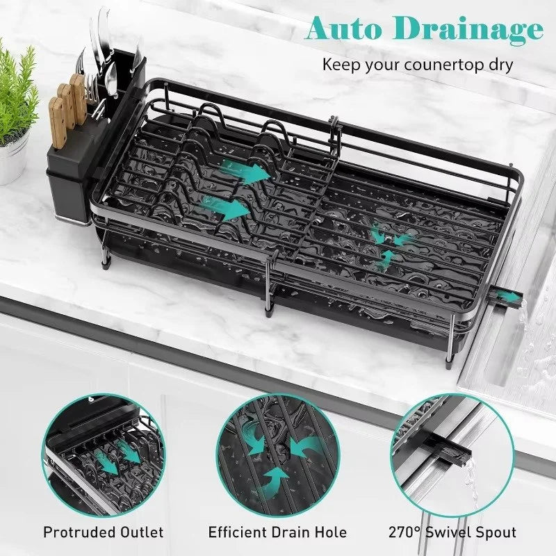 17″ x 13″ x 13″, edényszárító állvány hatékonyan szárítja az edényeket, tálakat, tányérokat és egyebeket. Pohár- és edénytartóval értékes pulthelyet takaríthat meg, és nagyobb családok számára is megfelelő.
